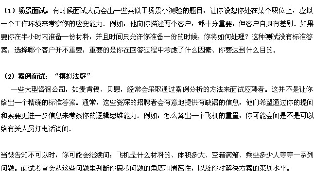 有的時(shí)候用人單位在邀請(qǐng)你用餐時(shí)還會(huì)同時(shí)邀請(qǐng)你的配偶。招聘者用這種方式考察:當(dāng)你以家庭身份去見客戶時(shí)會(huì)不會(huì)給對(duì)方一個(gè)好印象。而且,配偶是否也可以融入企業(yè)文化同樣是很重要的問(wèn)題,就算她/他不會(huì)成為你的賢內(nèi)助或者堅(jiān)實(shí)后盾,至少也不能是一塊束縛你發(fā)展的絆腳石。在實(shí)際面試過(guò)程中,主考官可能只采取一種面試方式,也可能采用幾種面市方式。