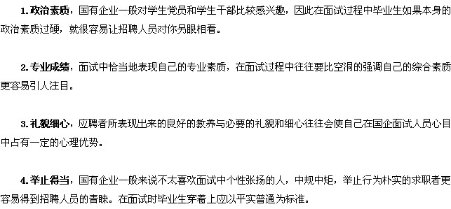 國有企業(yè)面試一般還要注意以下幾點(diǎn):